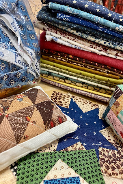 A large variety of dark prints and 5 yards of light print.