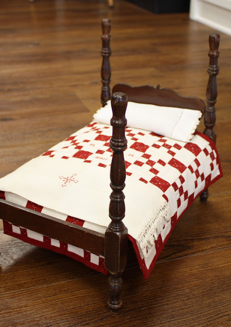 Love the little quilts she made, love the idea of finding an antique doll bed and decorating it.