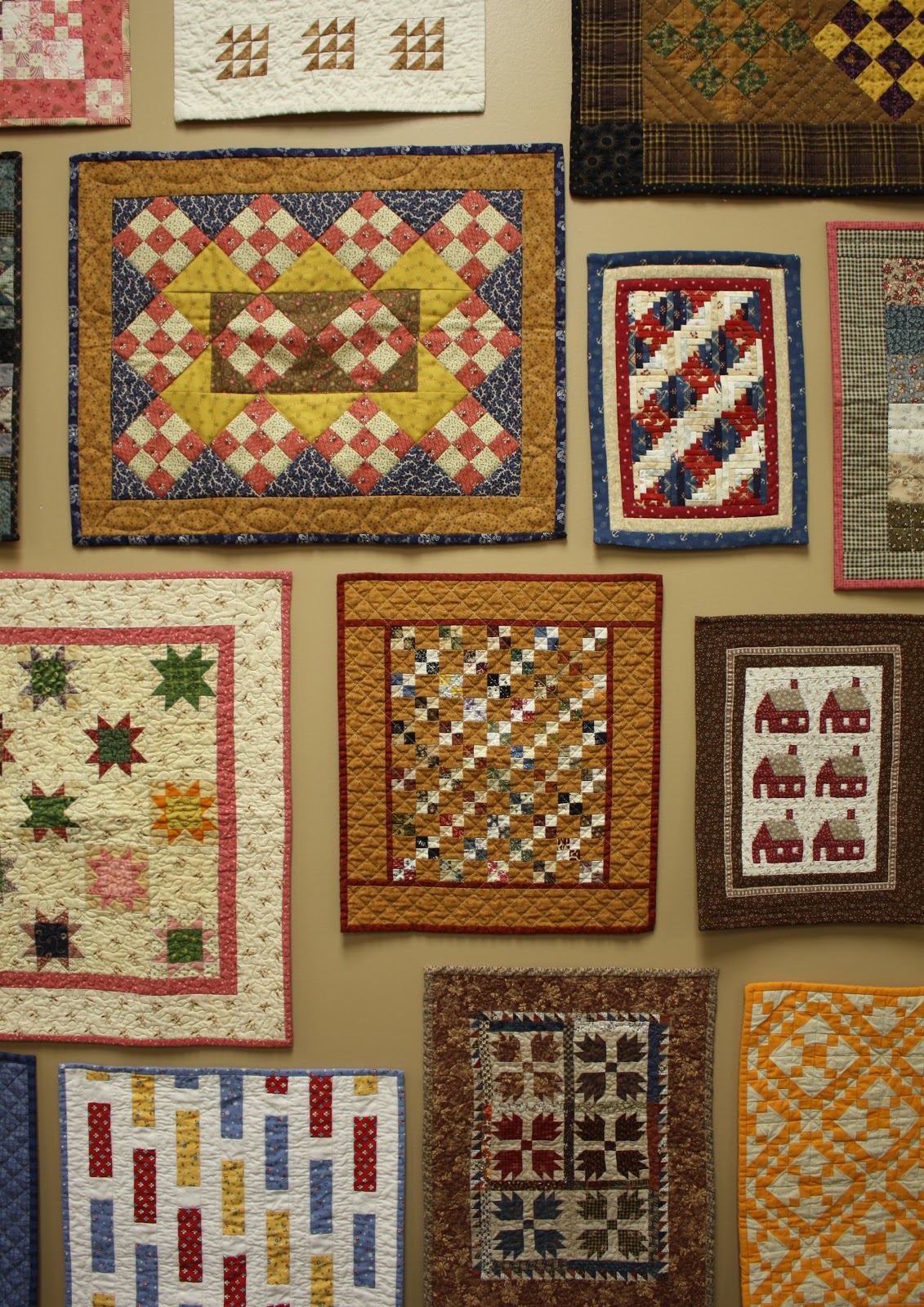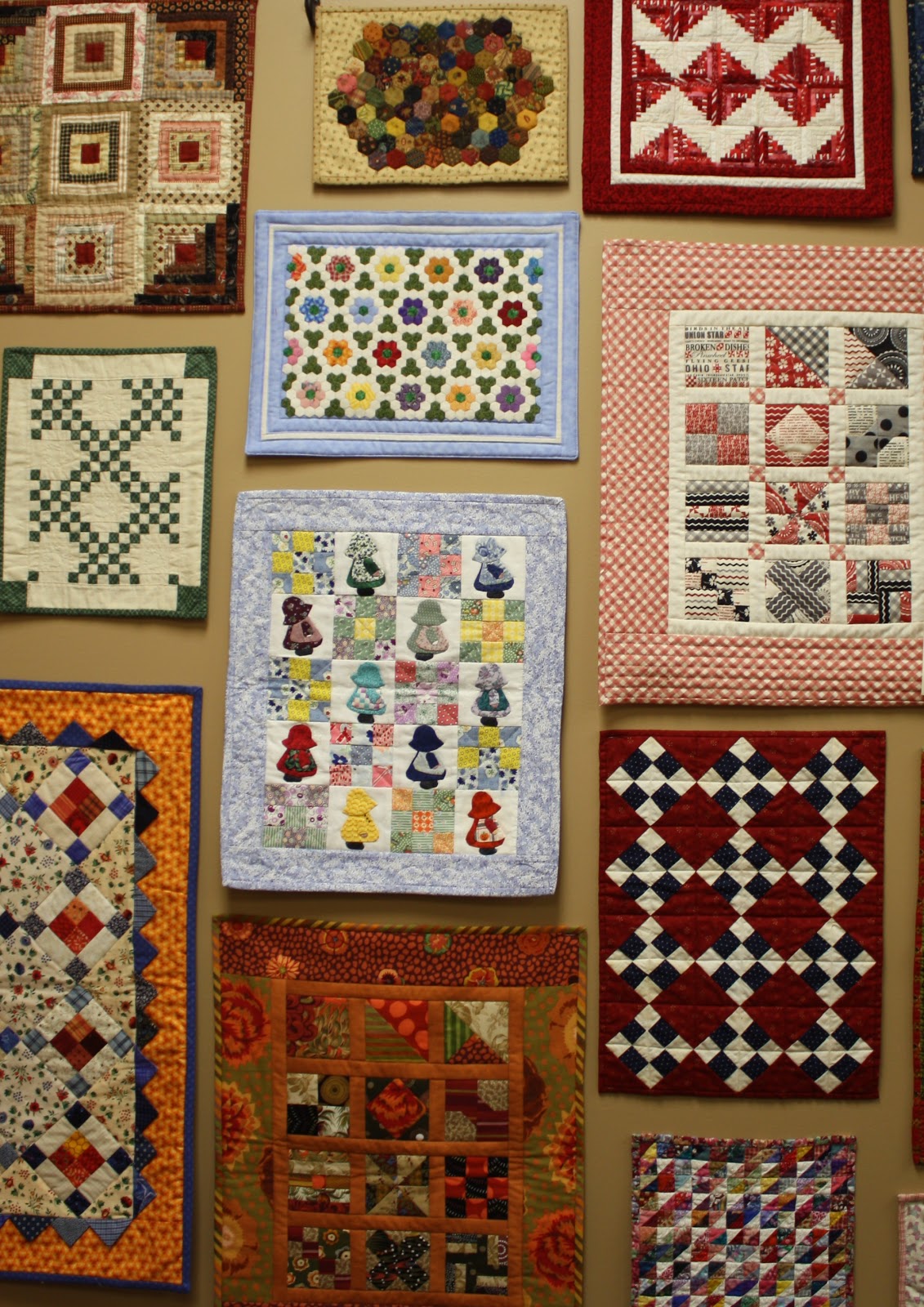 16. Wow! Just amazing to see that many all in one place. Lucky you. I realize they are all different sizes, but what would you say the average size of all those doll quilts might have been?
