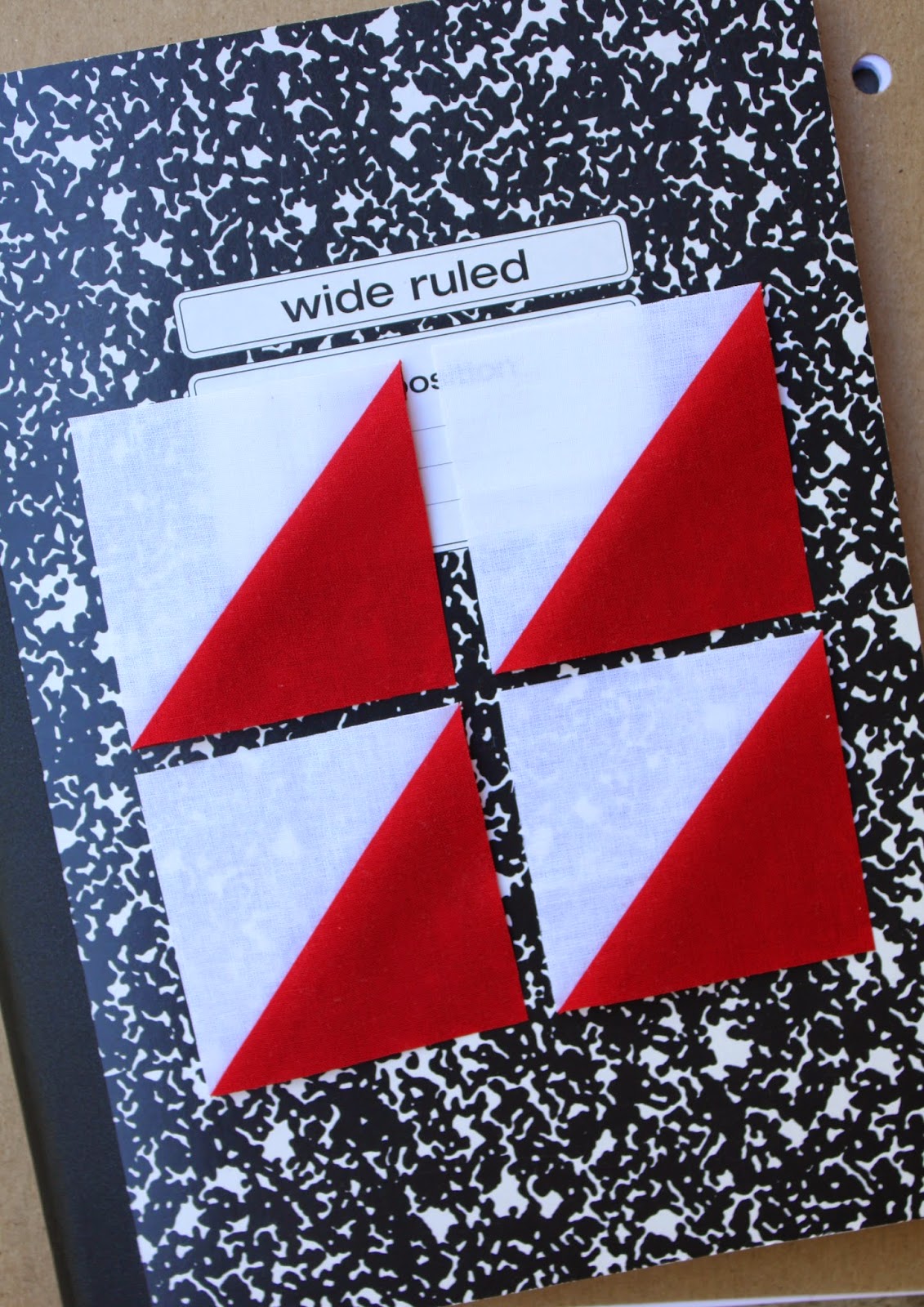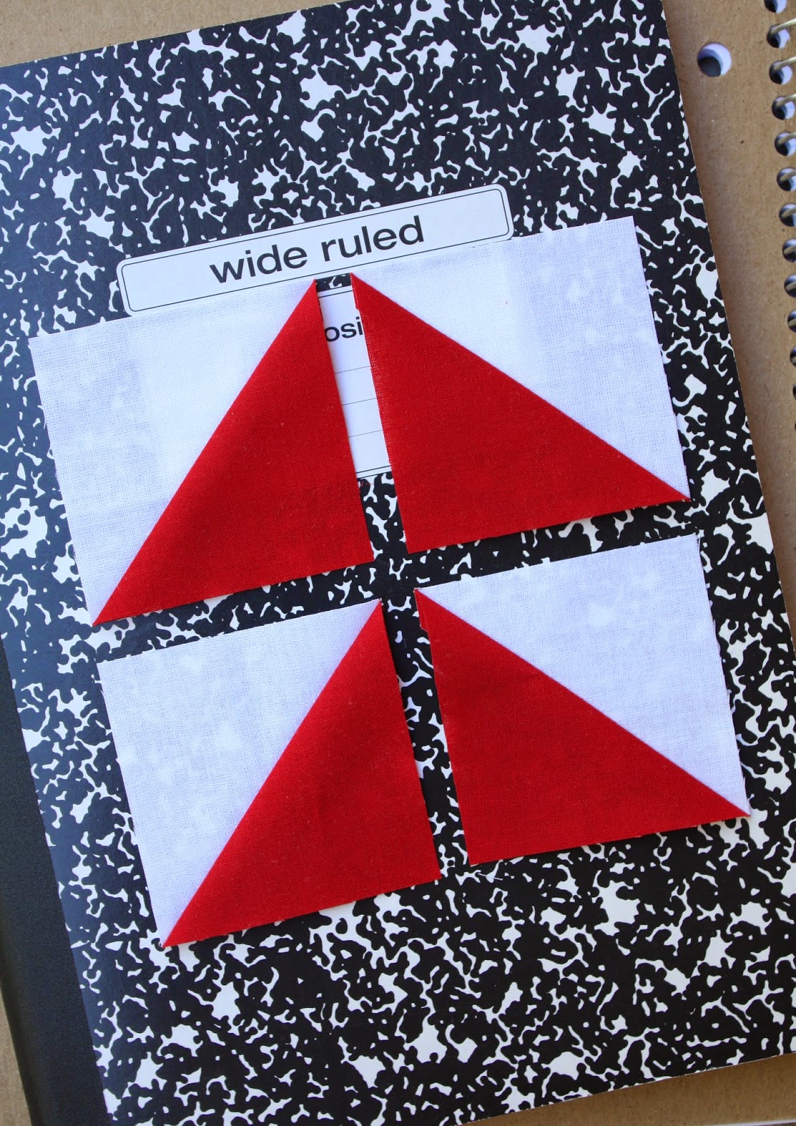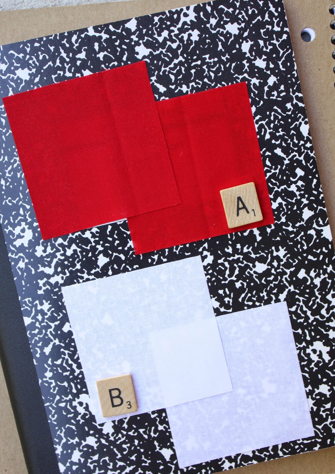 For each block cut 2 - 3" squares dark and 2 - 3" squares light