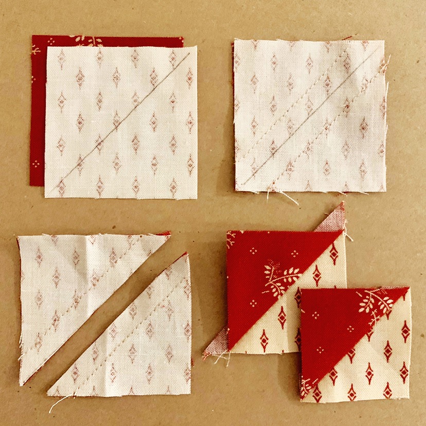 Using 2" light and red squares make 4 half