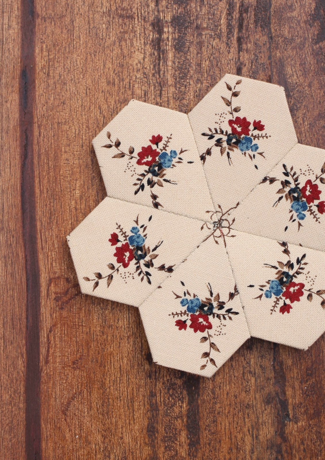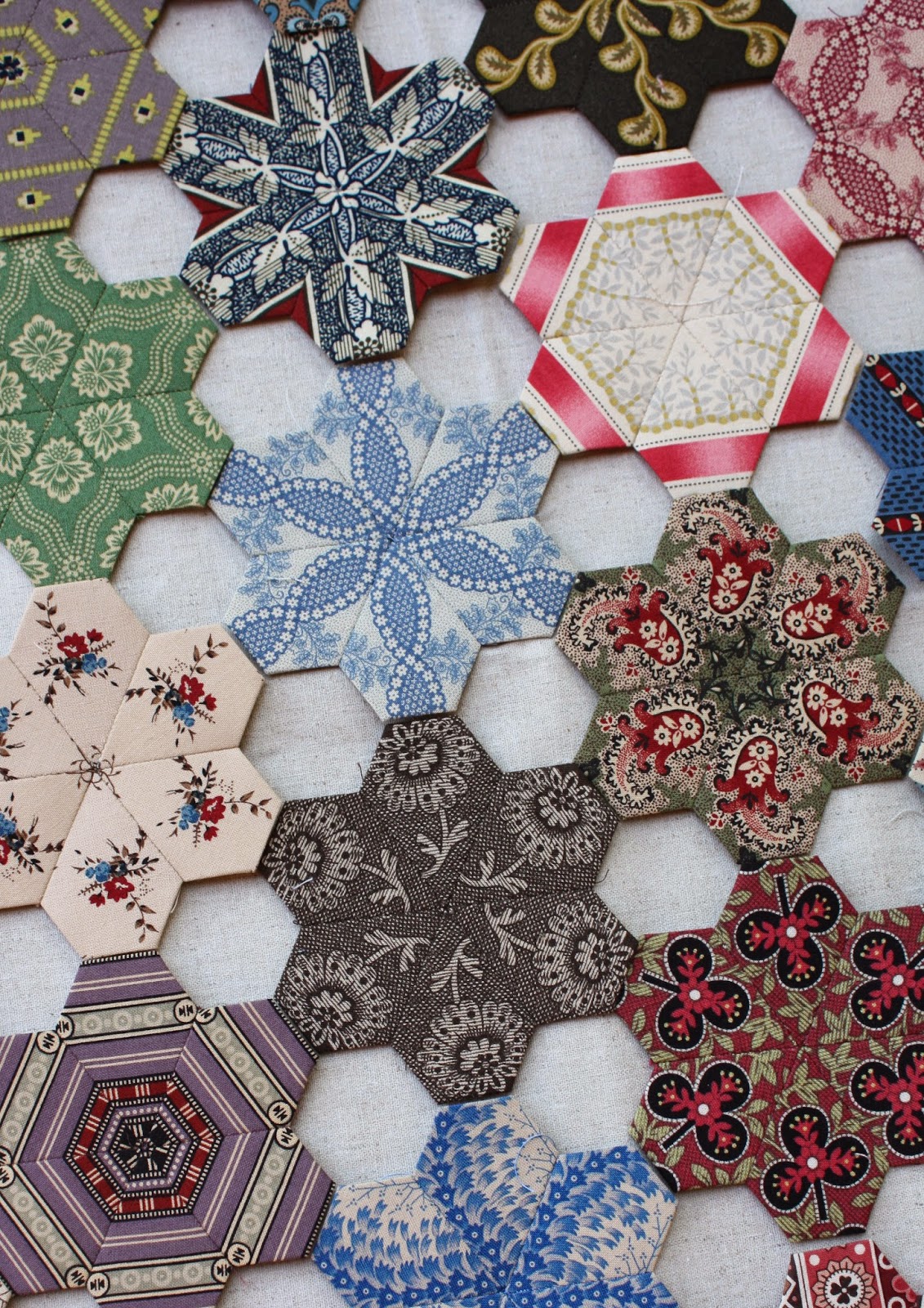I will be using 3/4" hexagons in a natural linen. Simple and Classic.